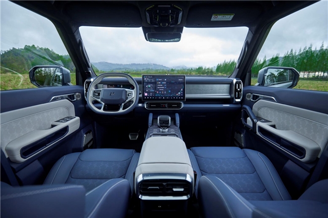狂野外表之下,是暖男般的舒适内在。山海T2认为越野可以躁,但不可以糙,其打破传统越野一切从简的内饰设计思路,选用激光雕刻的高定全饰面板、硬派多功能方向盘、水晶档把和轻奢麂皮座椅,配备12声道SONY顶级音响、多层隔音玻璃、50w手机无线快充、私人定制香氛系统等,并通过CN95高效滤芯、负离子新风系统和降磁技术,实现婴儿级健康座舱体验,以百万级设计营造出一个精奢力量派的乘坐氛围。
