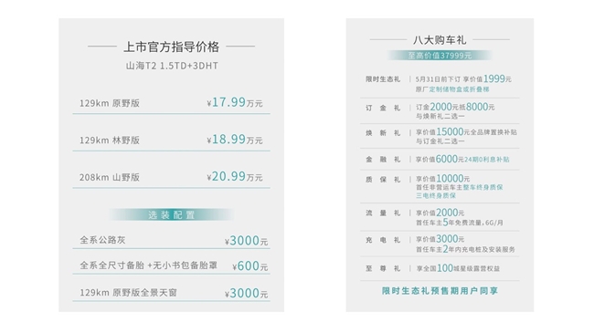 4月22日,定位“旅行越野超混SUV”的捷途山海T2正式上市。本次共推出3个版本,售价17.99万元-20.99万元,上市期间,捷途汽车还为用户带来8重诚意豪礼,陪伴追求自由、释放自我的旅行向往者们,轻松奔赴山海。