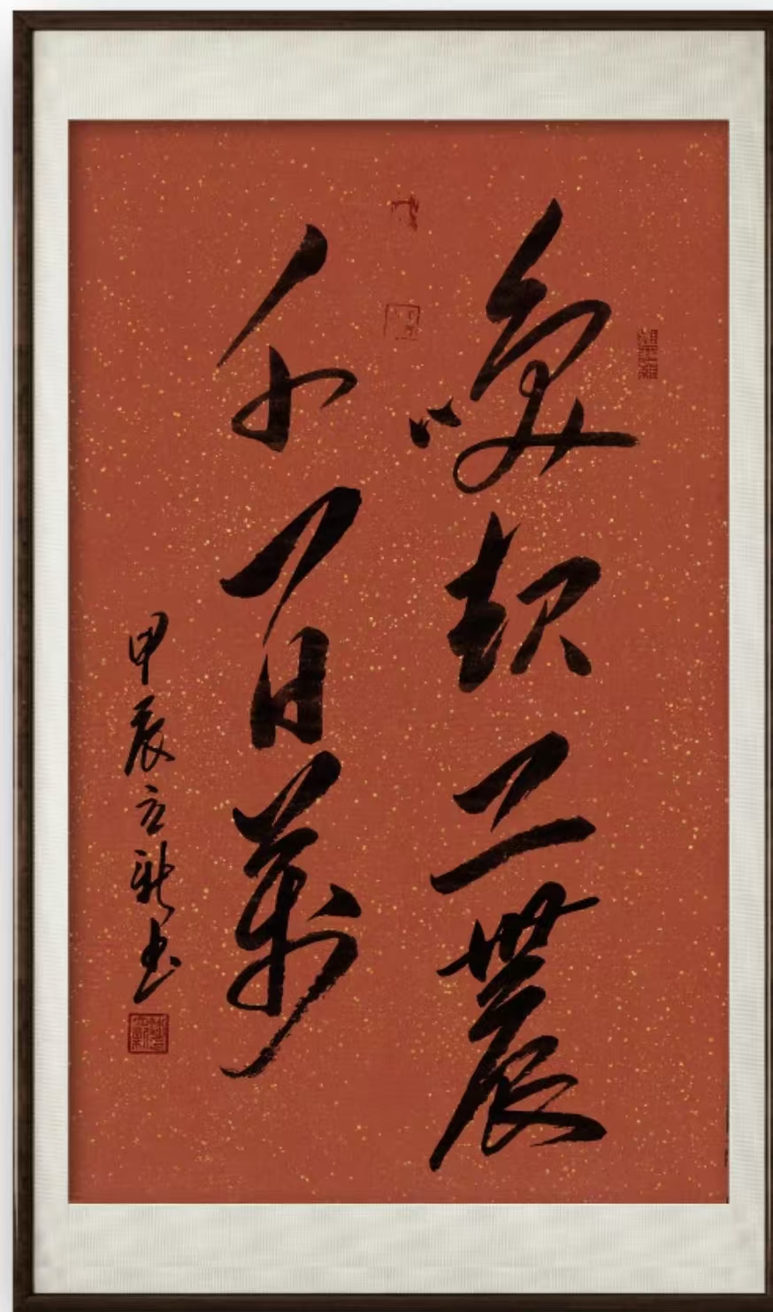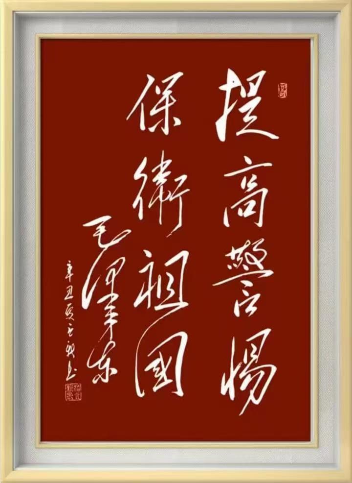 在深入研究毛体书法的过程中,潘立新先生不是模仿毛体草书的笔迹形态,而是要在书法精神层面上达到共鸣。毛体书法以独特的魅力和深厚的文化底蕴,在近现代中国书法史上占有重要地位,既展现了个人的情感表达,又蕴含着强烈的革命精神正能量。潘立新通过对毛体书法的深入探索,不仅继承了豪放大气的风格特点,还在此基础上融入了自己的理解和笔墨个性,形成了既有历史厚重感又充满时代活力的独特艺术风貌。