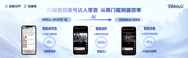 同时,AI能力同步赋能带货全流程:智能挂载、智能创作、智能选品等功能有效提升效率。例如通过智能体带货,拓宽流量场景,降低达人内容带货门槛,目前覆盖1万+动销智能体;以AI赋能智能创作,目前已经受益达人逾3000名;通过智能挂载,AI匹配内容和商 品,有效提升动销率。以上措施,有效的解决了行业内创作低效、转化断层的痛点,推动达人从能带货、带好货,到降门槛、提效率,为百度达人内容带货高效可持续发展注入新动能,为达人和机构提供了更多的发展机会。