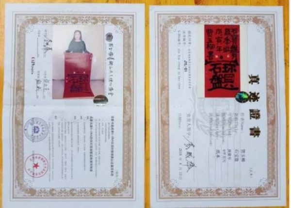 2010.4.13艺术品(石宝盘)有在联合国艺术保真认证协会鉴定系统(真迹证书)证副本